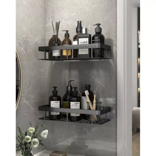 De Aluminium Badkamerplank 2-delige Set Zwart is dé slimme oplossing voor wie meer ruimte, betere organisatie en een strakke moderne uitstraling in de badkamer wil. Dankzij het lichtgewicht aluminium, de roestvrije afwerking en de mogelijkheid tot montage zonder boren creëer je eenvoudig extra opslag voor cosmetica, shampoo, douchegel en accessoires. De bijgeleverde extra haken maken deze set nóg praktischer, waardoor je badkamer direct overzichtelijker en luxer aanvoelt.