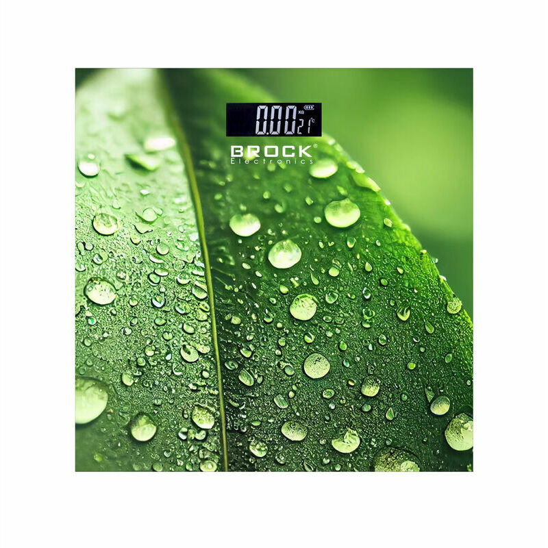 Brock BS‑003 Digitale Personenweegschaal – 30 × 30 cm – 180 kg – Stijlvol Blad‑motief – Helder Verlicht Display – Inclusief 2x AAA Batterijen – Eenvoudige Eén‑stap Weegfunctie