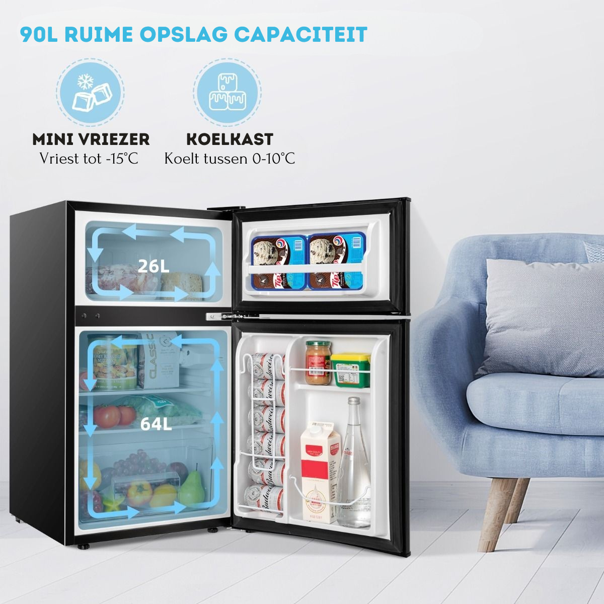 - Hou je eten en drinken koel wanneer je maar wilt met deze 90L mini koelkast!