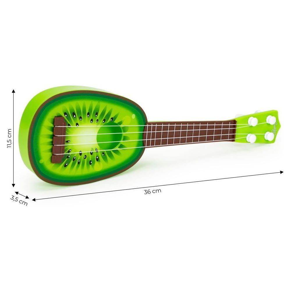 Ecotoys mini kunststof kinder ukelele / gitaar kiwi met 4 snaren 36 x 11.5 x 3.5 cm groen