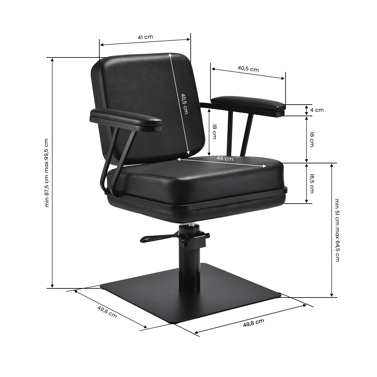 De bekleding van hoogwaardig eco-leer is ontworpen voor intensief gebruik: hij is duurzaam, hygiënisch en gemakkelijk schoon te maken. De matzwarte vierkante voet zorgt niet alleen voor een moderne uitstraling, maar ook voor uitstekende stabiliteit tijdens elke behandeling.