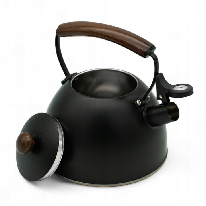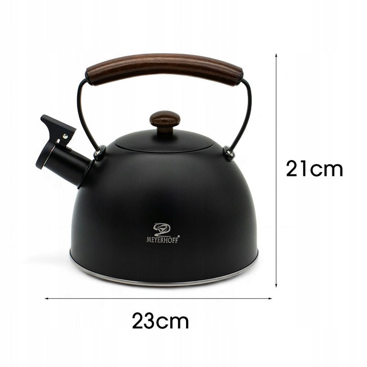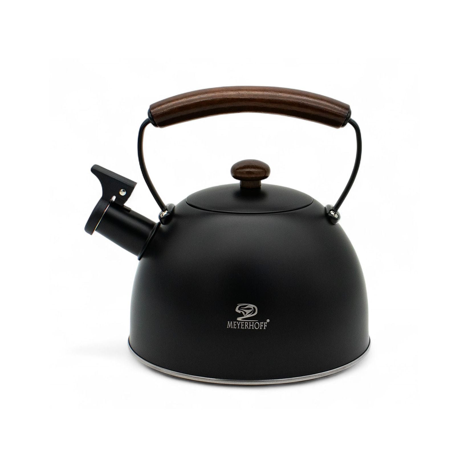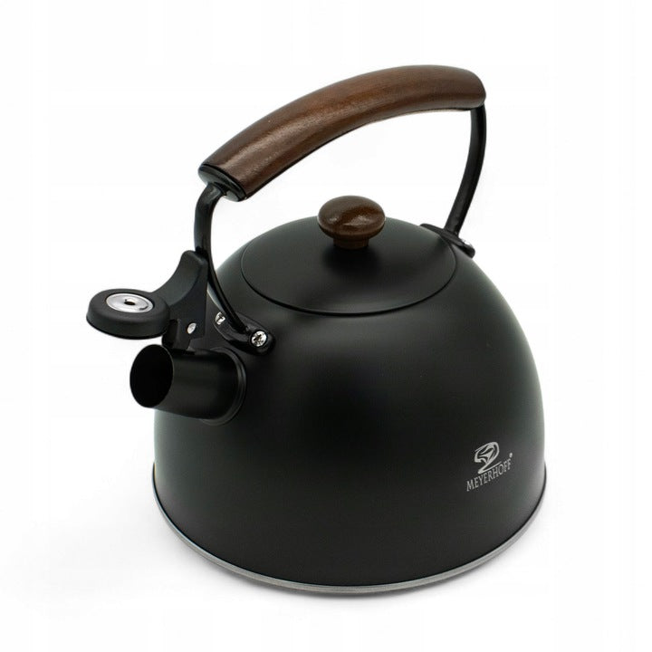 Meyerhoff Fluitketel 2,5 L – RVS Mat Zwart – Houten Handgreep – Fluitketel voor alle warmtebronnen