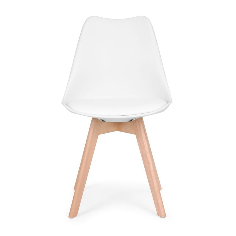 Modern Home Set Van 4 Eetkamerstoelen - Kuip Stoelen Met Eco-Leer Kussen En Beukenhouten Poten - Wit
