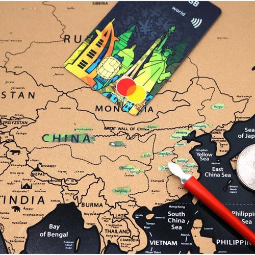 - Gebruik de kaart als persoonlijk reisdagboek: kras landen na elke trip.