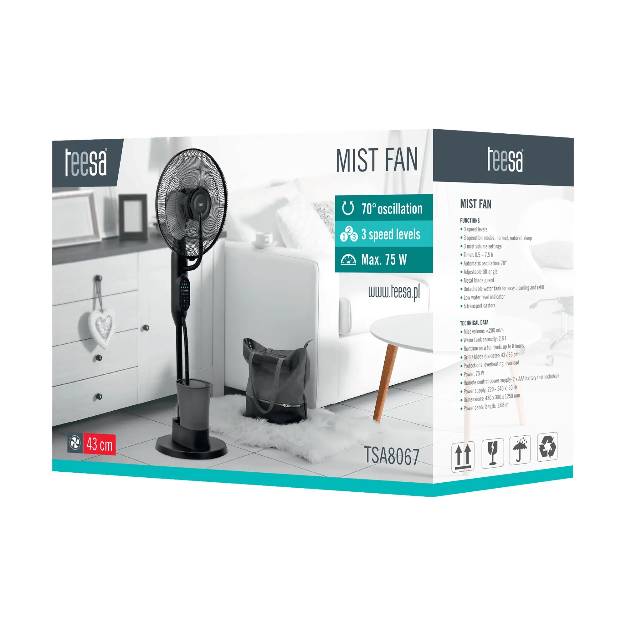 - Verkoel jezelf op warme dagen met de Teesa ventilator met mistfunctie!