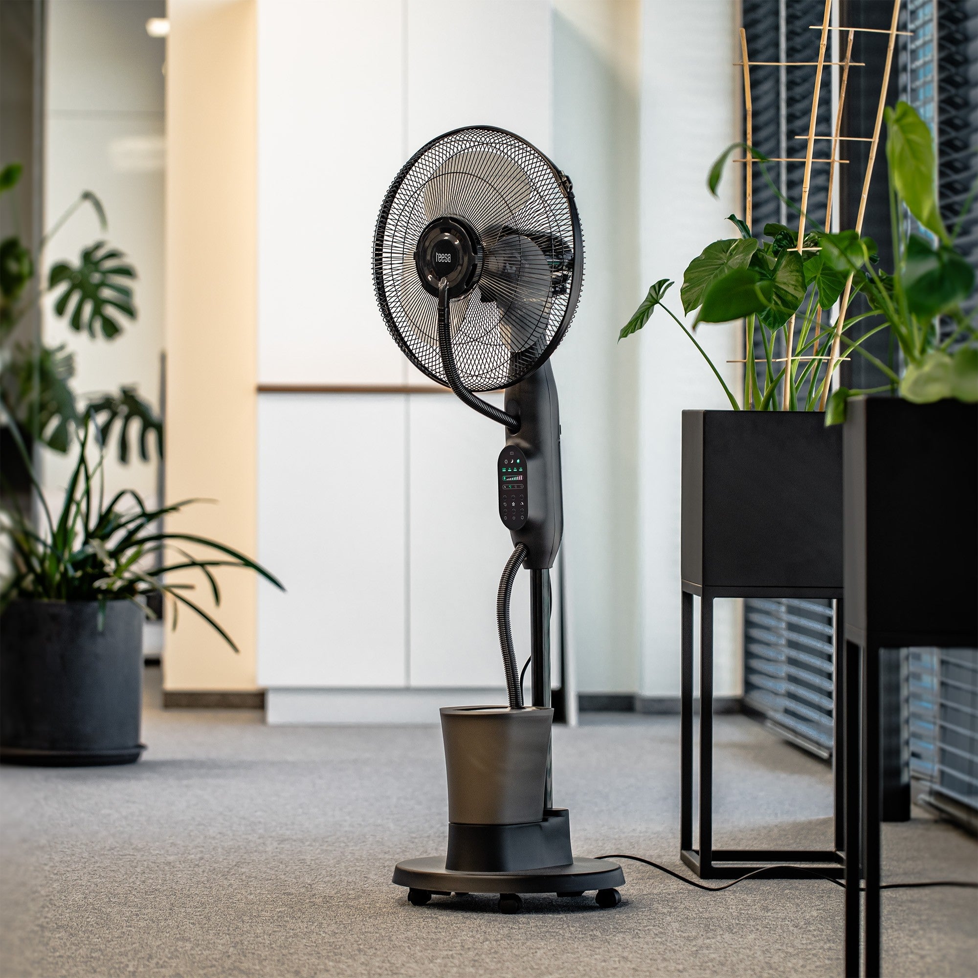Heb je genoeg van de hitte in huis of op kantoor? De Teesa staande ventilator met vernevelingsfunctie brengt verkoeling op warme dagen. Pas de luchtstroom aan met 3 snelheden en kies uit 3 bedrijfsmodi. De mistfunctie zorgt voor extra verfrissing. Met handige timer en automatische oscillatie voor gelijkmatige verkoeling. Blijf comfortabel zonder onnodig lawaai!