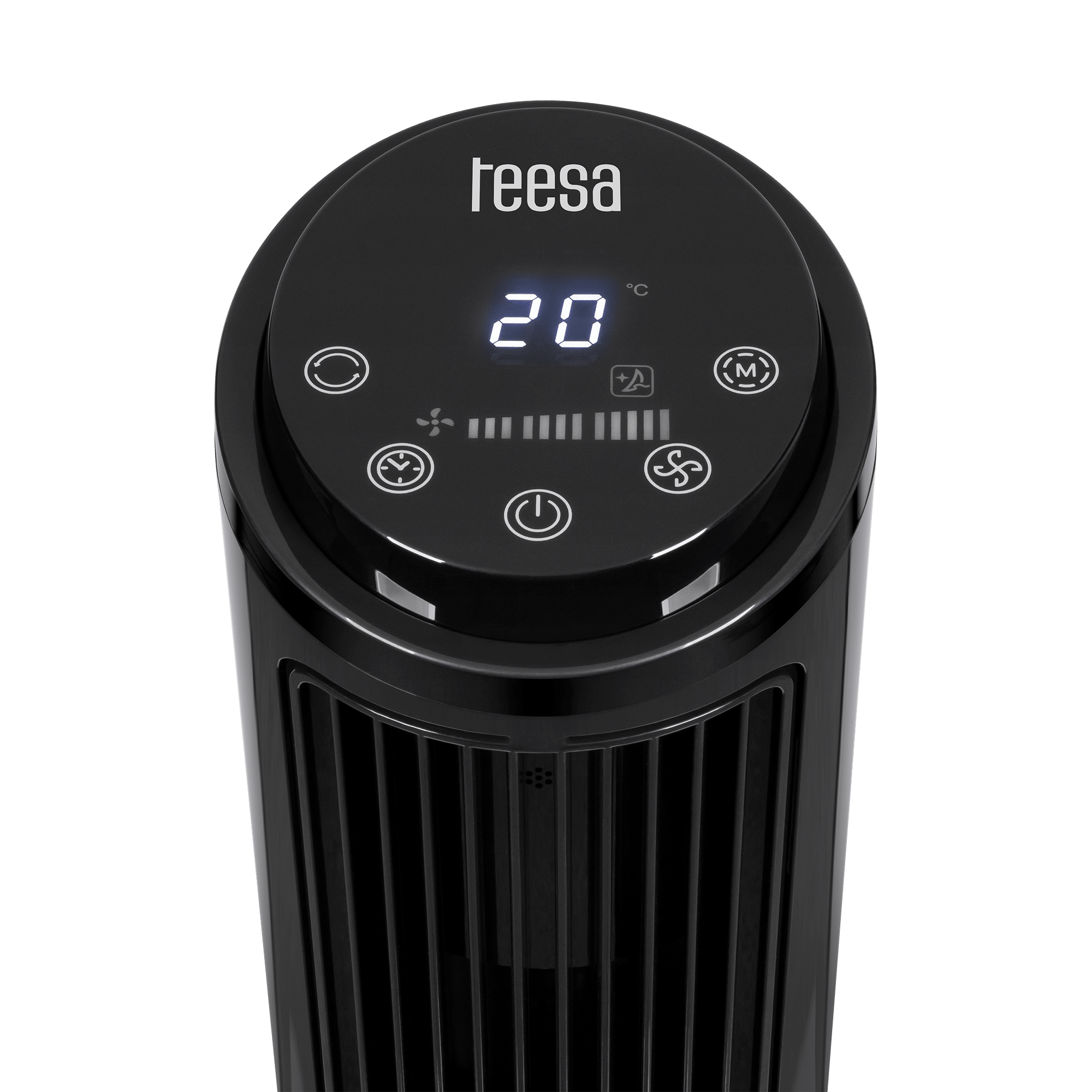 Deze moderne torenventilator in zwart combineert een elegant, compact ontwerp met krachtige luchtcirculatie. De oscillerende functie en instelbare snelheden zorgen voor optimale verkoeling, precies waar jij het nodig hebt.