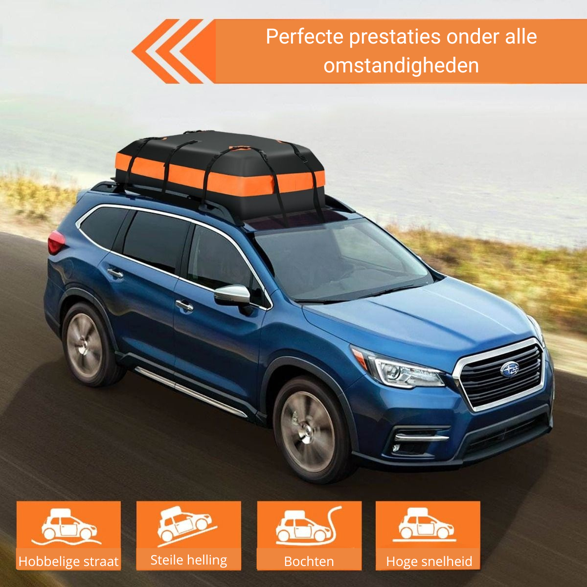 Geen dakrails nodig – wél 420 liter extra ruimte, waterdicht en beveiligd.